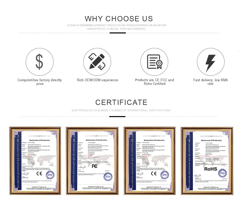 Feature 1: Patent design and with CE/Rohs/FCC certificates qualified product